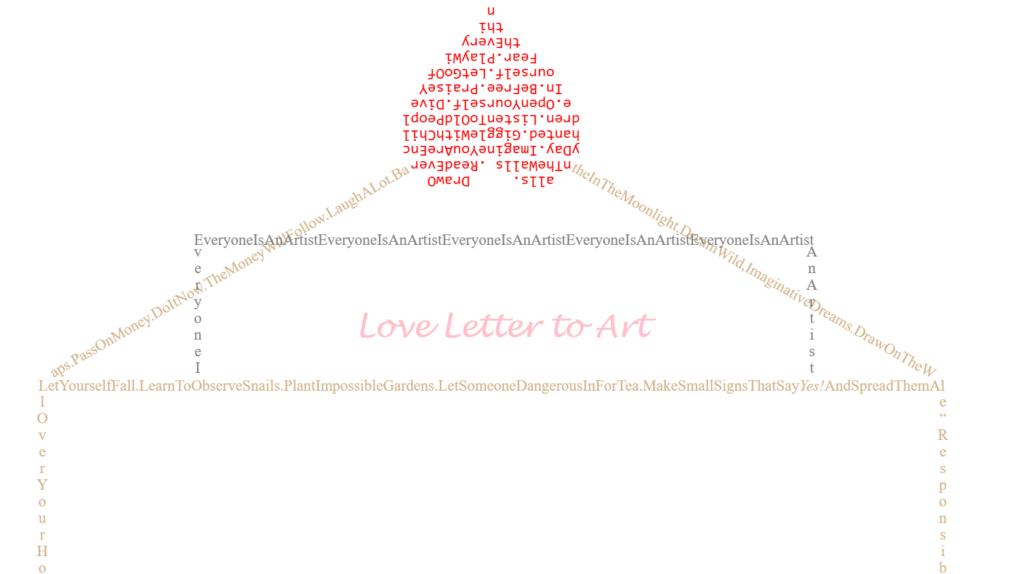 Credit to “Everyone Is An Artist” by Susan Ariel Rainbow Kennedy. The link is https://designmanifestos.org/sark-everyone-is-an-artist/